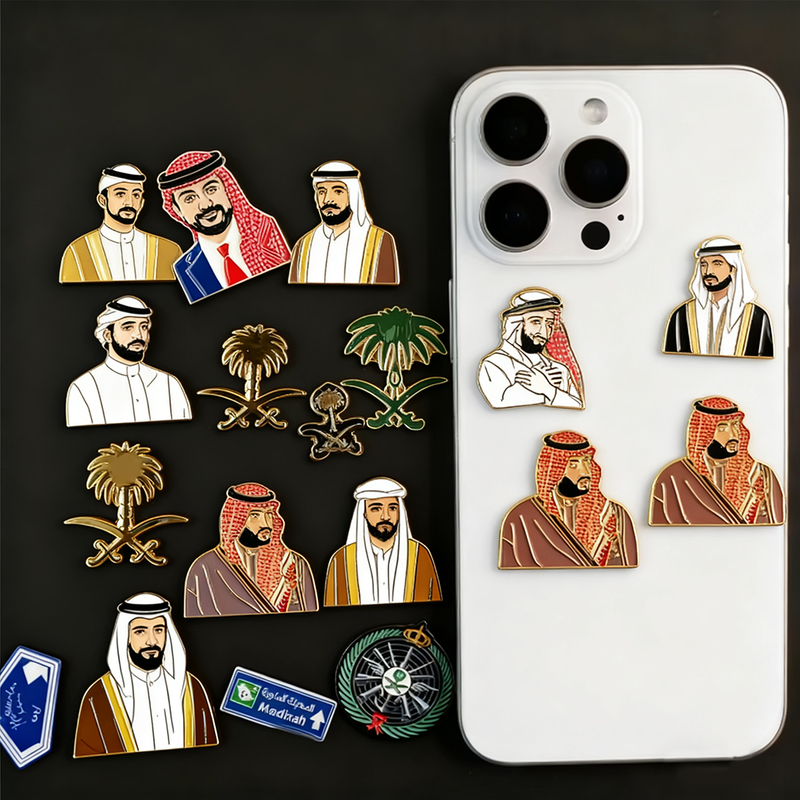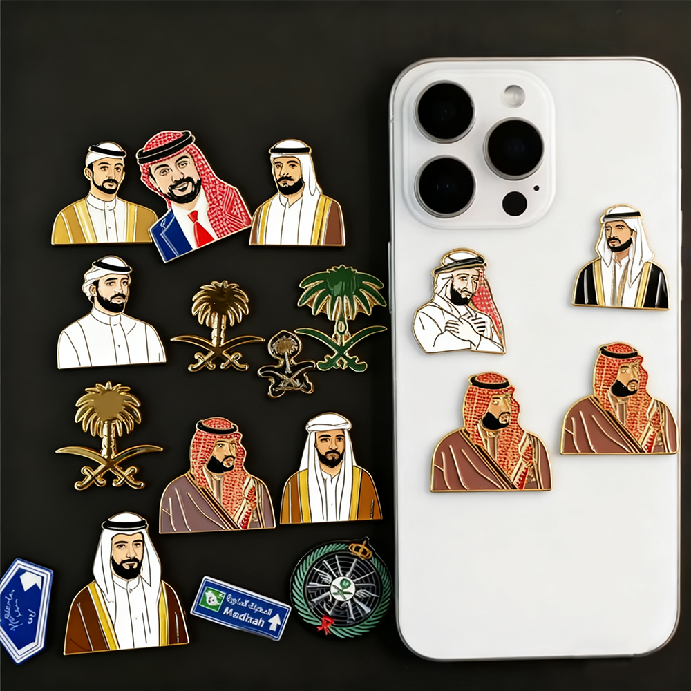 China Factory Custom Saudi National Day Pins New Fashion Phone Sticker Brooch with Metal Lapel Enamel Badge