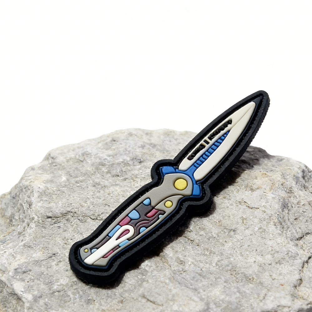European Folding Knife Shape PVC Patch High Quality Soft Rubber Knife Emblem Creative Knife Design Patch for Apparel Backpacks Decoration
