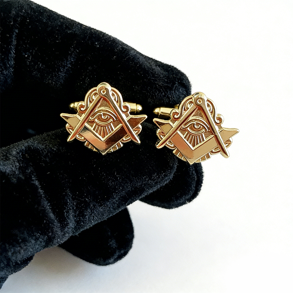 The set also includes luxurious Masonic cufflinks and studs, meticulously crafted with the finest materials to exude prestige and sophistication. The intricate Masonic design adds a touch of tradition and symbolism to your ensemble, making them the perfect accessory for formal events and special occasions.