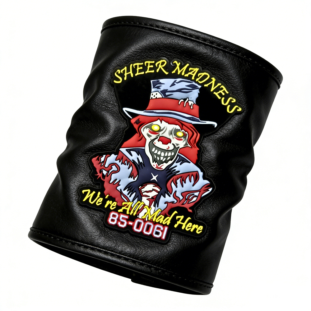 This factory-made PVC patch features a sinister horror clown design—complete with glowing eyes, tattered styling, and the iconic “Sheer Madness”/“We’re All Mad Here” slogans. But what makes it a top pick for custom orders? It’s fully customizable via PVC patch factory services.