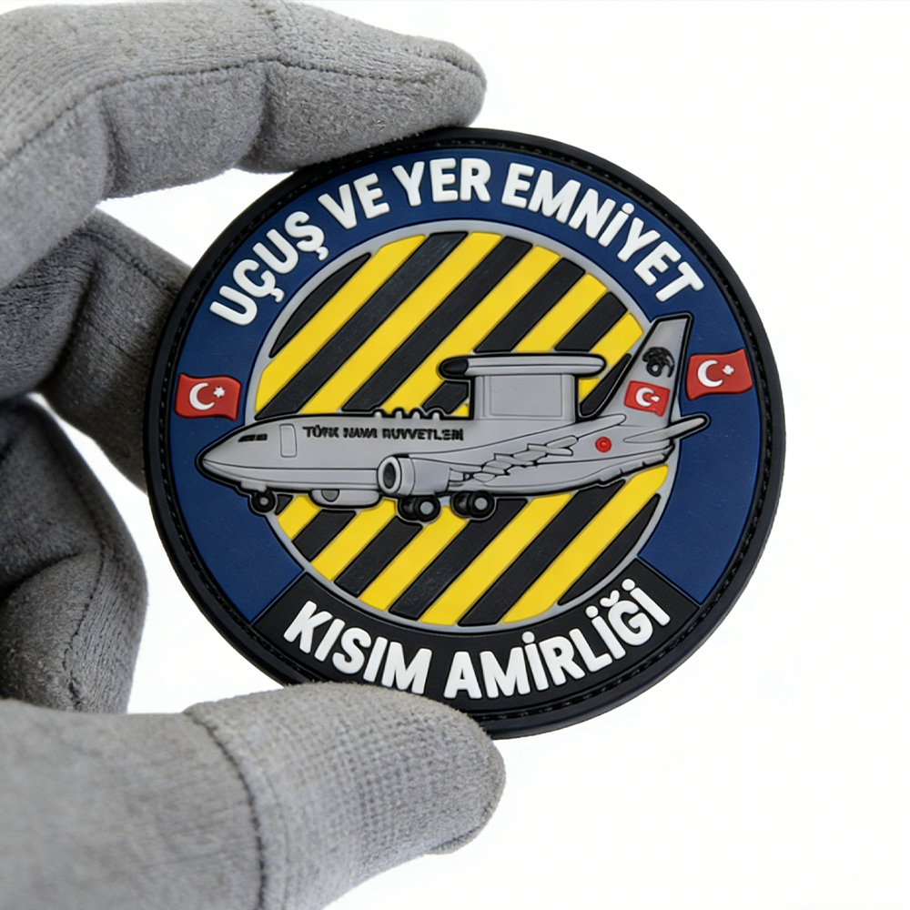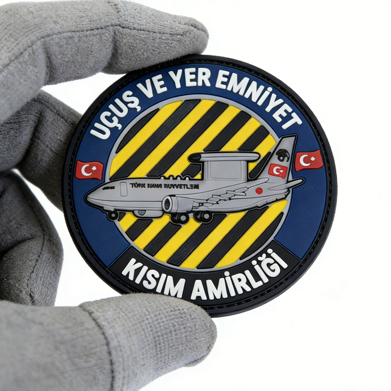 Turkish Aviation Style PVC Patch Round Design Yellow Black Warning Stripes Turkey Inspired Rubber Morale Patch